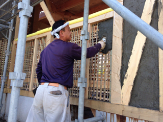 左官さんと競争しながら、頑張って塗ります(笑)