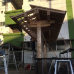 気になっている数寄屋門も、板金屋さんが雨間を見計らって、