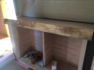 玄関ホールに、杉の渦くり(夏目を削ってへこました物)を貼ったら良い感じに出来上がって来ました。