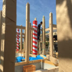 大黒柱は、人の手では下がらないので、機械で下げてももらいました。