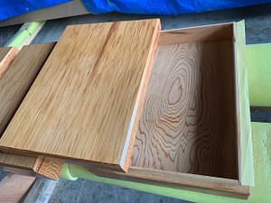 基礎の地墨は打ってあったので、寸法を付けてドリルで穴をあけ、