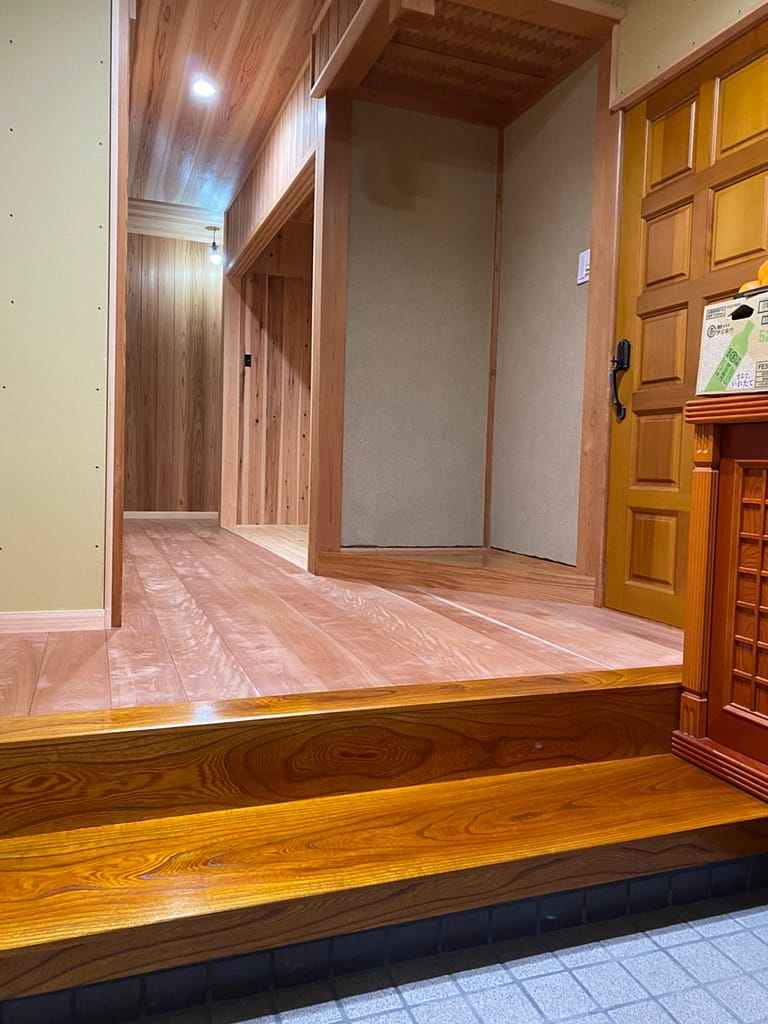 もともとあった、三角コーナーは、ケヤキの無垢材でお化粧直し取替えです。