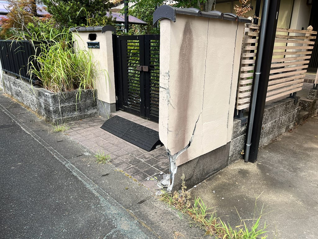 門柱と門が事故で壊れてしまい、撤去、復旧工事
