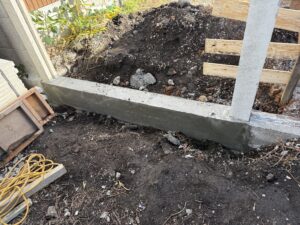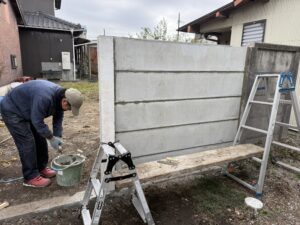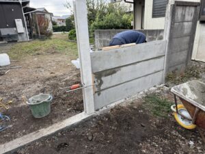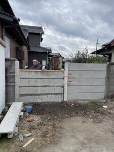 先日、擁壁(万年塀)の解体、柱の設置し柱の間の基礎の打ち込み、