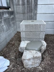 長年の間に傾いてしまっていたので、化粧ブロックで基礎からやり直し、