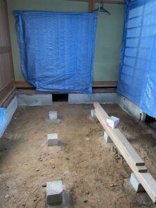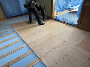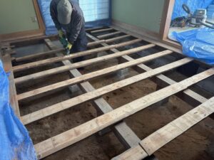 お客さんのご意向で根太組からやり直して、断熱材を入れてほしいとの事です。