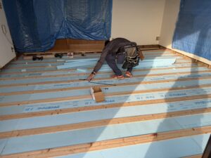 居間の床がべこべこになり、床をネタ組からやり直してほしいとのご依頼の、