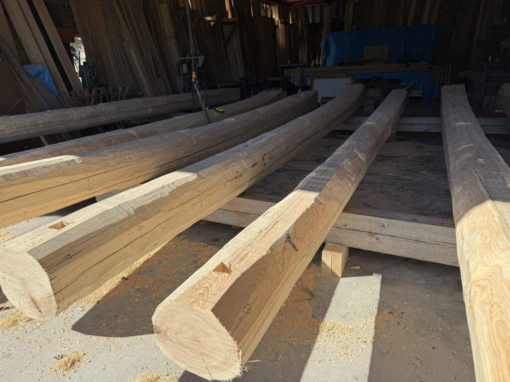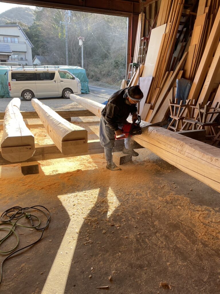 終の棲家「平屋」の小屋組みの丸太の刻みが始まりました。