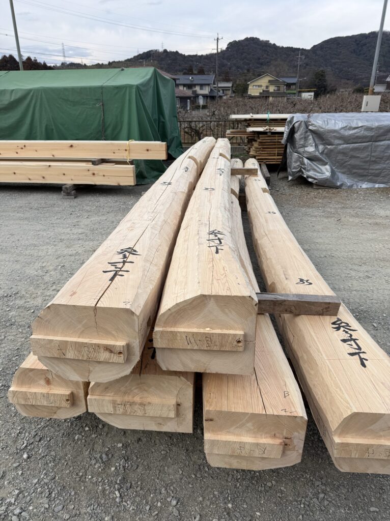 この子たちが、屋根の荷重を支えて、本桁、大黒柱、女大黒、管柱へと荷重を伝えて、土台、基礎へとつないでくれます。