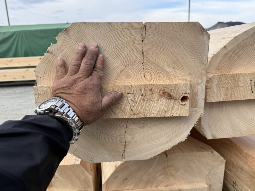 A:自然の丸太は一本ずつ形や曲がりが異なります。大工が自ら水平・垂直の「基準墨」を筆入れし、それに合わせて手作業で刻むことで、どんなに曲がった木でも、建物全体を精密かつ水平に組み上げることが可能になるからです。