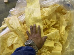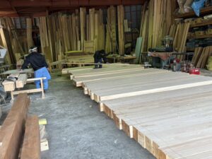柱のカンナ掛けをすると15cm幅の鉋屑が出てきます