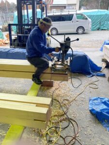 「終の棲家」大黒柱、女大黒、管柱の加工へ
