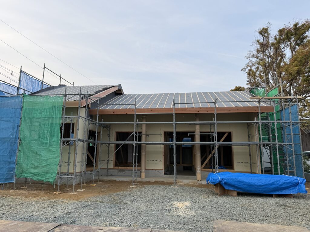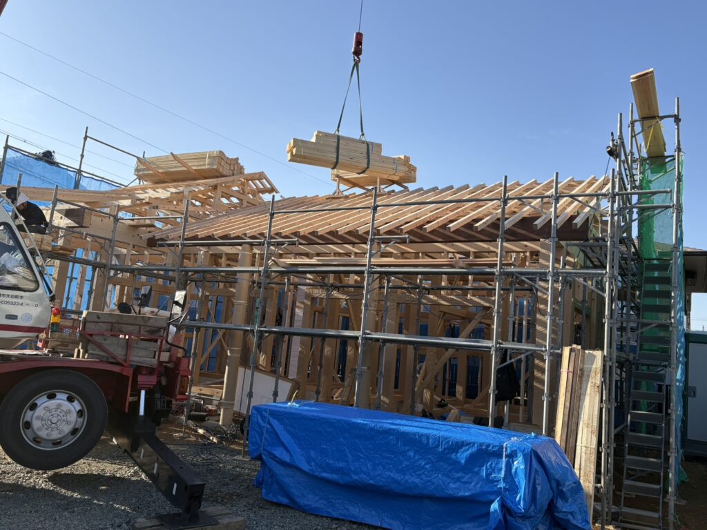 26日から柱を建て、27日で垂木まで打ち、28日に無事に上棟しました。
