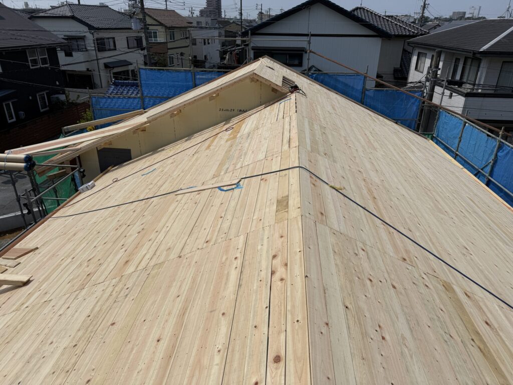 棟梁の所では、桧の野地板しか使いません。