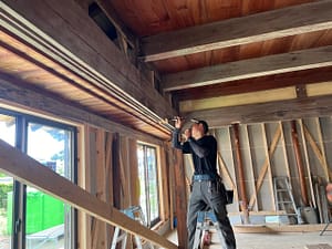 ようやく、家らしくなって来ました。 若い衆も、少しづつですが、仕事を覚えてくれていると思います。 玄関サッシの取り付け、下地作りは棟梁の仕事で、 若い衆がとっておいてくれました。 ありがたい事です(笑) 棟梁ながら・ 加 […]
