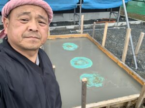 現場です。 突然の雷雨、豪雨、ビックリでしたが、 30分もすれば雨もやみお天気になりました。 その後、コンクリート打ち 普通は、左官さんの仕事ですが、棟梁は後の事を考えて準備をします。 コンクリートを打ち込む1時間前・・ […]