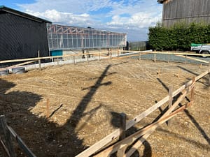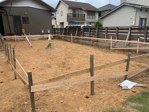 やり方、丁張(ちょうはり)基礎を作る為の基準になる工事 その後基礎工事に入ります。 先日、地盤改良をした杭から地盤をさげて砕石を入れて、 捨てコンクリートを打ちこみます。 湿気を基礎に上げないようにビニールシートを引いて […]