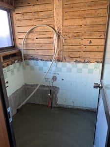 既存のお風呂を壊し、ユニットバスの設置の準備です。 土間打ち・・・ 0.35㎥くらいのコンクリートなので、若い衆と砂と砂利とセメントを練って、 コンクリートを作り打ち込みです。 たまにはいい事で、若い衆に配合などをあ~~ […]