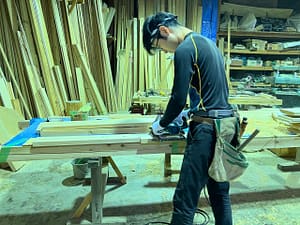 4周年記念プレゼント企画 なおきが初めての、機械を使っての加工をやってもらいました。 一歩間違えると、大きな怪我につながるので、注意をしてからの加工です。 どこの部材の加工をしているかというと、 押し入れの中段の材料の加 […]