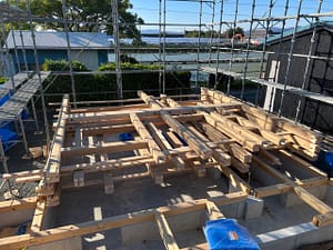 本日、18坪の平家の家の建前をしました。 前組で、お客さんの娘さんとめいごさん、大黒柱の前で記念撮影 柱の大きさにビックリしていました。 サシ鴨居を入れて家の強度を高めます 小屋組は檜の丸太で、斜めに大きな火打ちを入れる […]