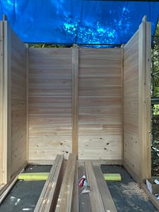 神社の、建て替え工事今日から柱と壁を同時にはめる作業からです。 午前中は、雨が降っても大丈夫なように、シートを張り、雨除けを作ってからの作業です。 柱を建てて、3ブロックに分けてあった30mmの板を、柱の溝にはめていきま […]