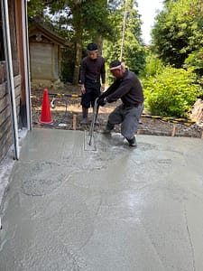 神社の倉庫前土間打ち