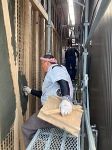 やっぱり人が多ければ早く終わる・・・ 壁塗りが終わりました。 外回りシロアリ駆除も終わり、タイペックシートを貼れば雨が降っても大丈夫! 左官さんがお掃除手伝ってくれています。 棟梁・・・疲れた顔していますね~~~ 左 […]